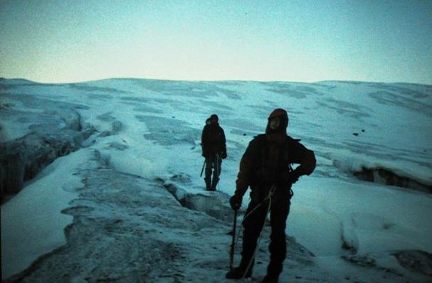 But we still are in the shadow of the mountain and already are for several hours on the legs. By quite thin air and the efforts (we must crawl partly over glacier columns course-snowed; Rope, spike and climbing-iron are also needed for progressing necessarily) perhaps we looked something exhausted out.