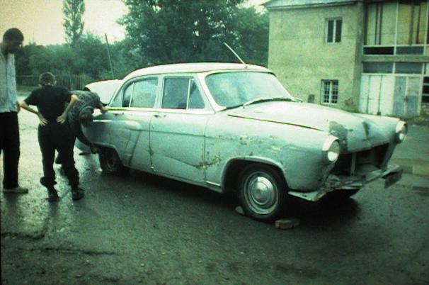 the return trip to Gori brought some obstacles with itself, there the rear right tire of our vehicle (old Volga) had a flat